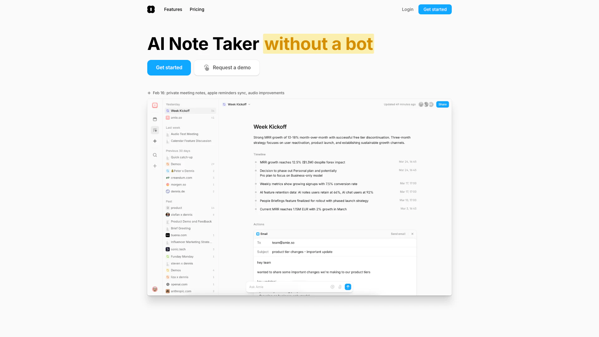 - Save hours: After the meeting, Amie will automatically generate summaries and action items, turning your notes into automated workflows.