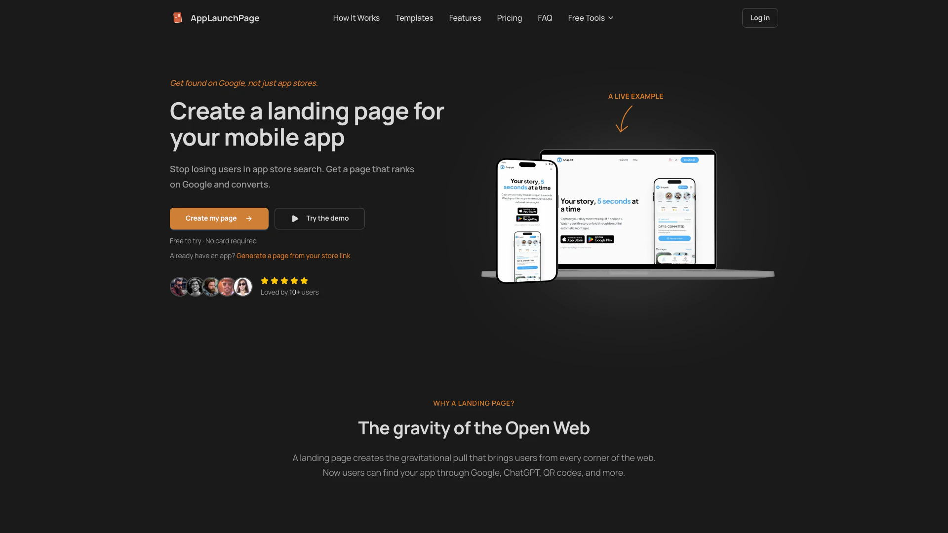AppLaunchPage is a tool that allows users to create beautiful landing pages for their mobile apps quickly and easily, helping them to be found on Google and not just in app stores.