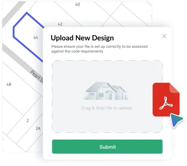 - Submit your designs: Use the drag-and-drop feature on the Archistar AI PreCheck platform to upload your design files.