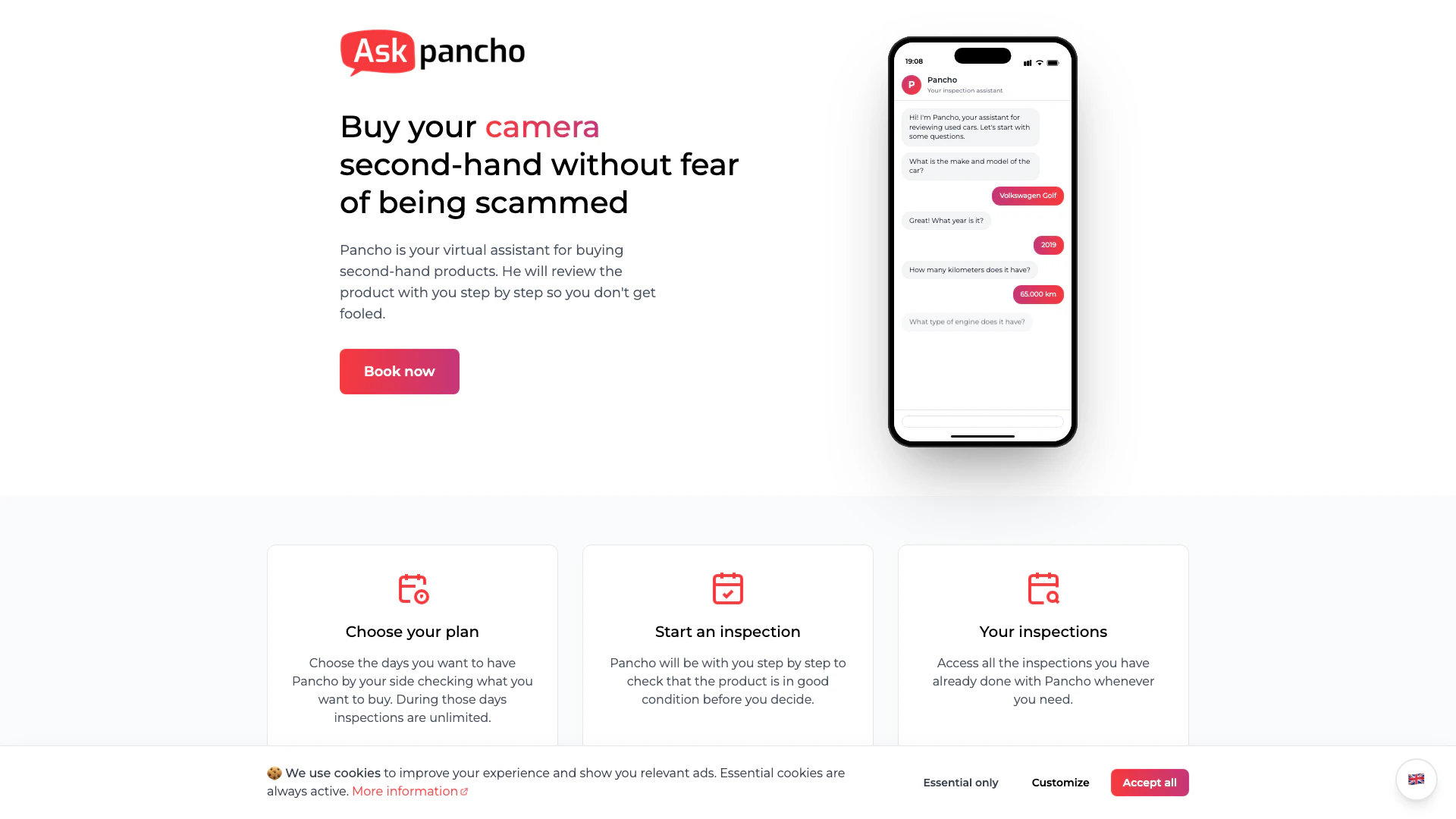 - Start your inspection: Provide Pancho with details about the product you wish to inspect, including make, model, year of manufacture, main features, and general condition.