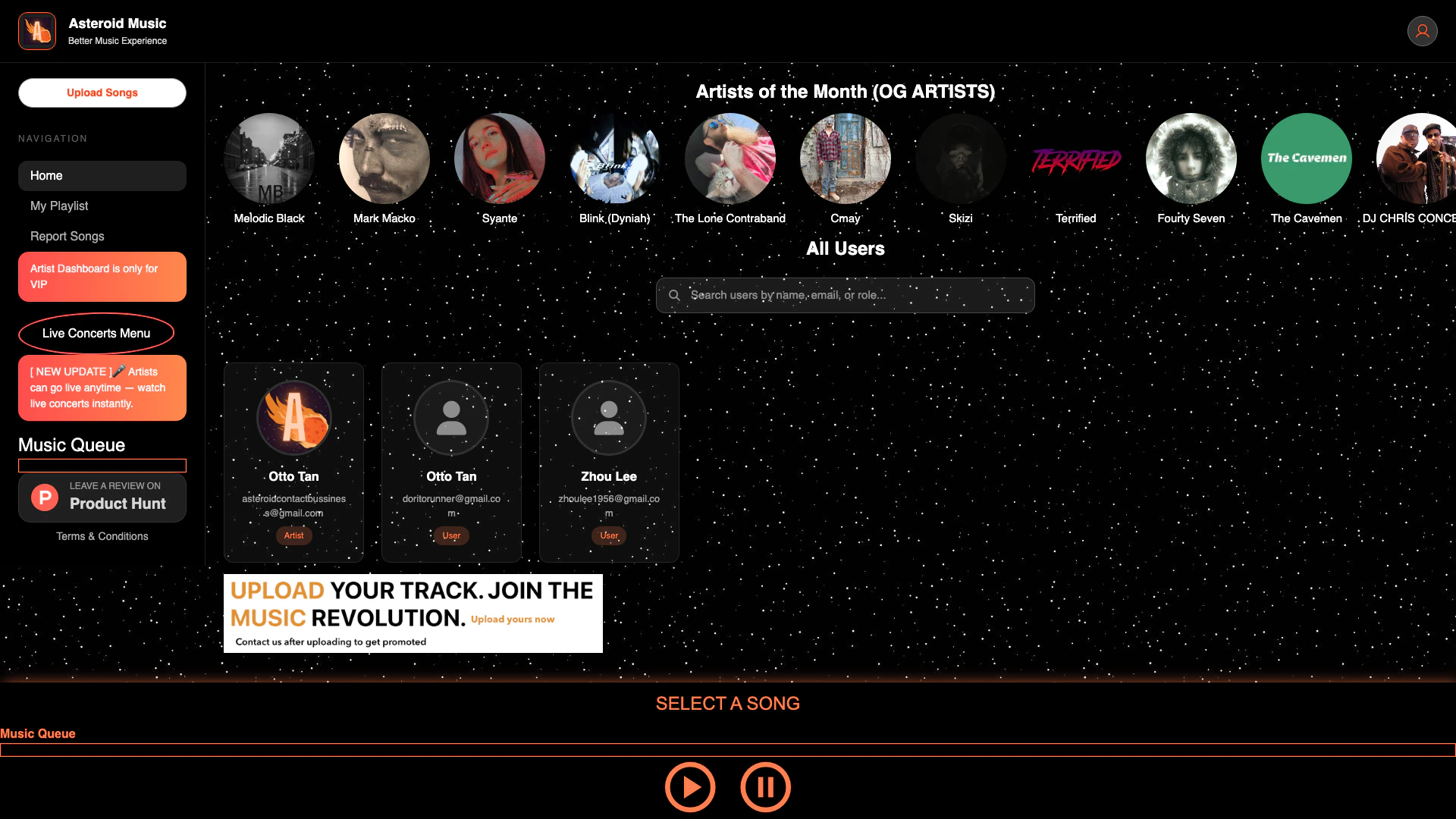 - Ad-Free Experience: Asteroid8 offers a music discovery platform without any ads, enhancing the listening experience for users.