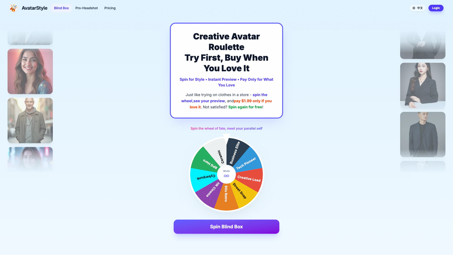 - Low-Cost Option: Only pay $1.99 if you love your avatar; otherwise, you can spin again for free.