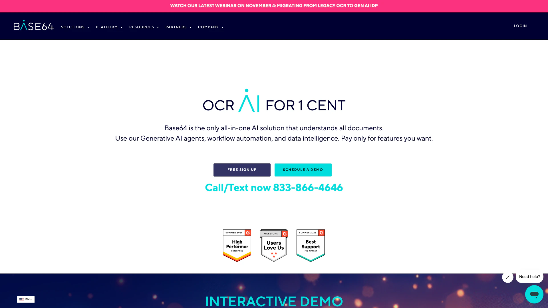 Base64ai is an advanced Document Intelligence[1] Platform that leverages Agentic AI[2] to automate document processing. With over 2,800 prebuilt models[3], it offers powerful capabilities for understanding, processing, and acting on both structured and unstructured documents. Designed for organizations looking to enhance efficiency and accuracy, Base64ai simplifies the document handling process, enabling businesses to transform their operations with AI-driven insights.