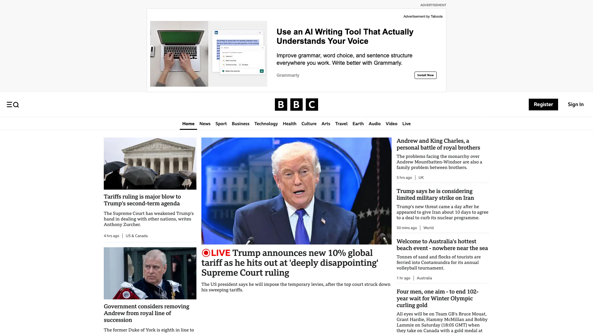 - Visit the BBC website at www.bbc.com to access a variety of news articles and features.