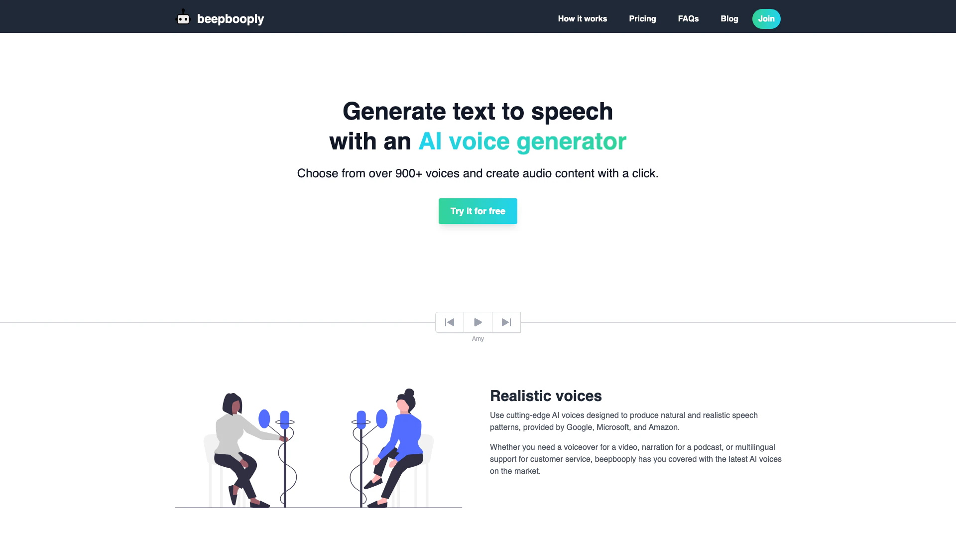 - Realistic AI-generated voices from top providers like Google, Microsoft, and Amazon.
