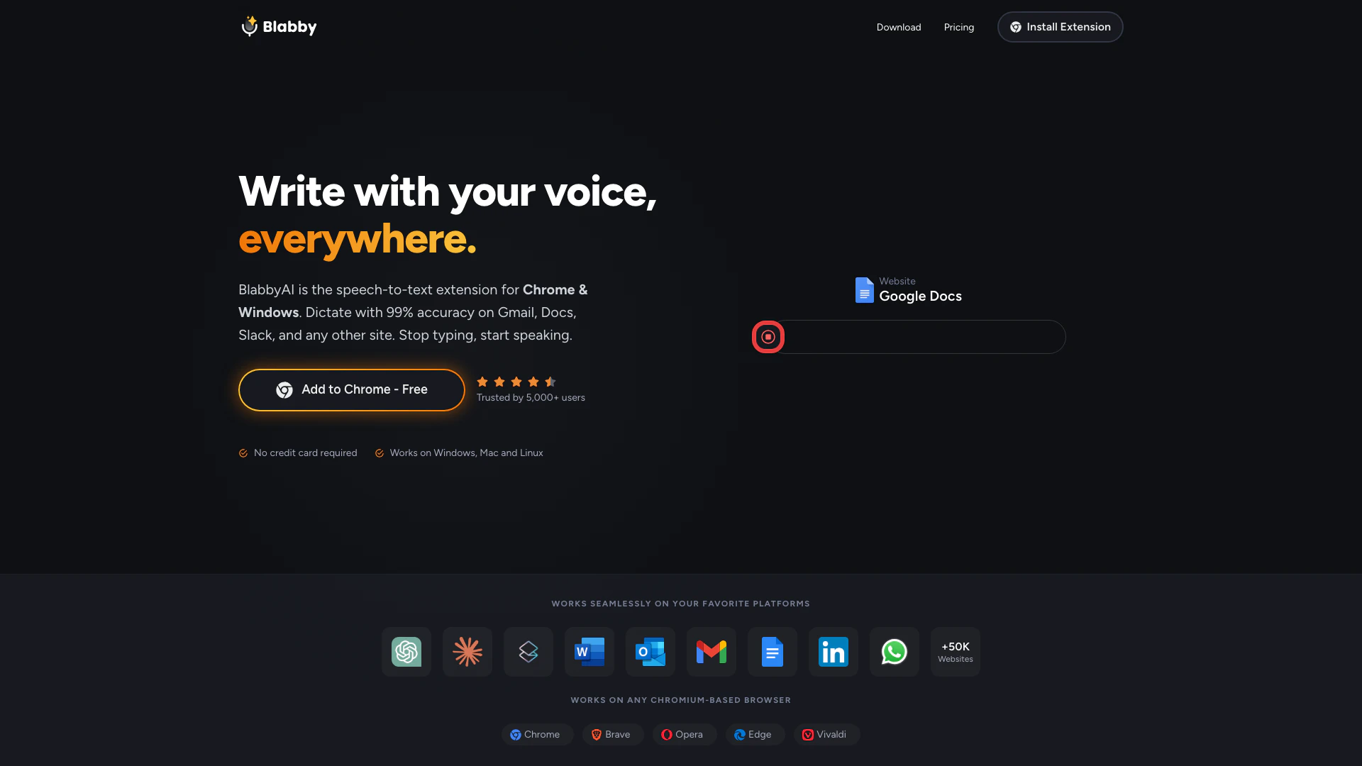 - Multi-Platform Compatibility: Works seamlessly on various platforms including Chrome, Windows, Mac, and Linux, allowing users to dictate on any website.
