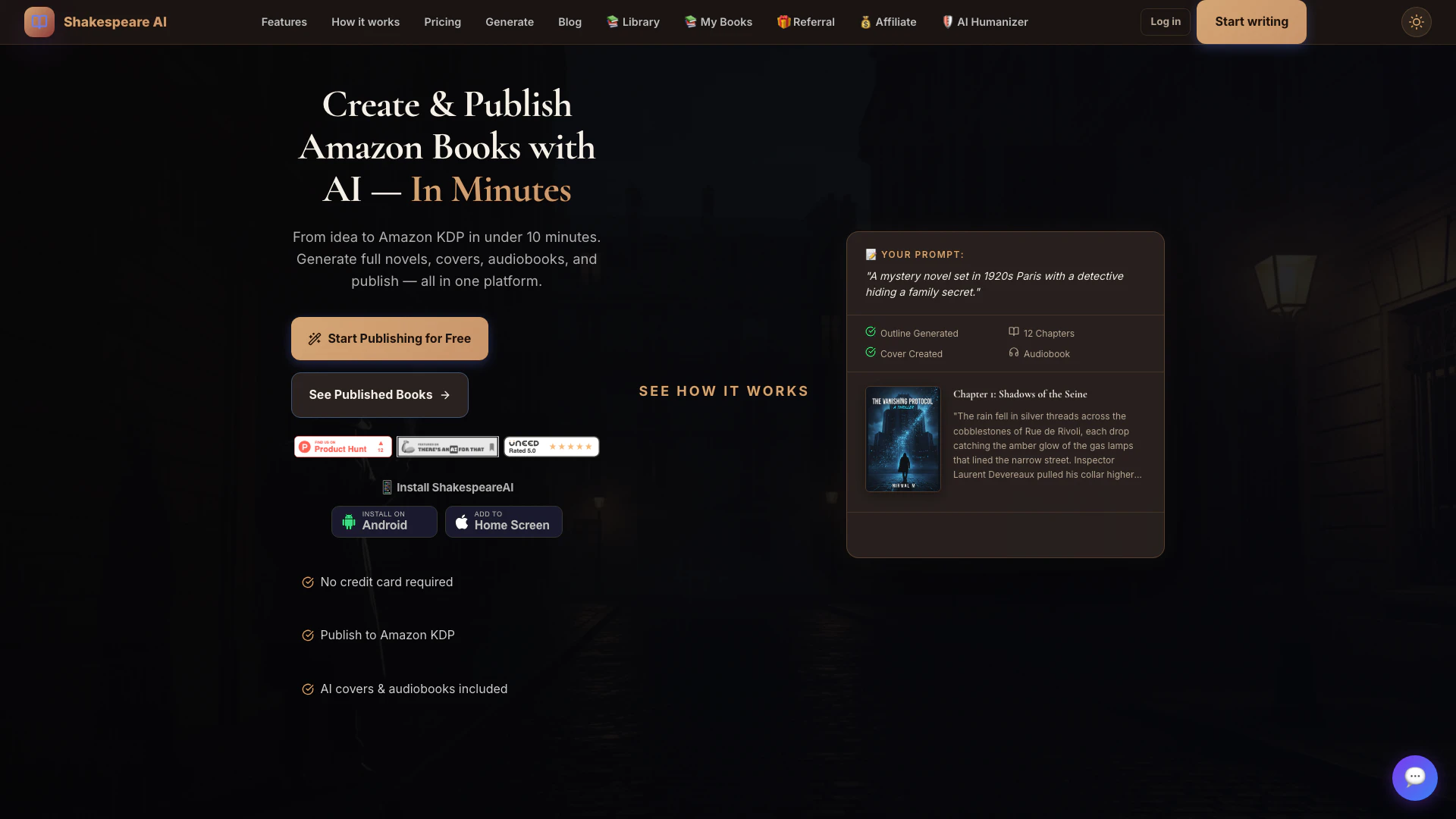 - Instant Book Generation: Shakespeare AI allows users to create full novels, stories, and books in minutes, streamlining the writing process.