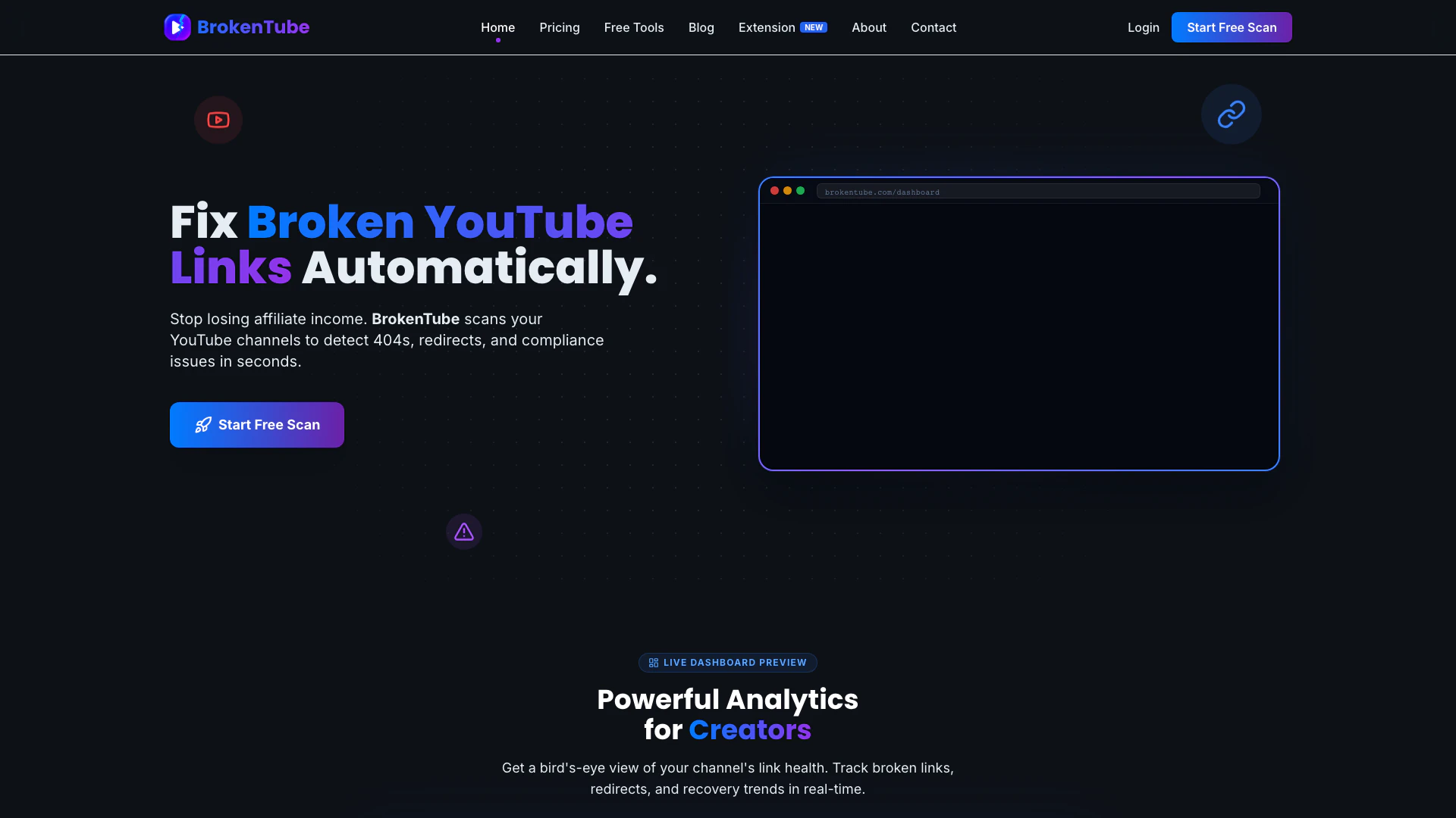 - Real-Time Analytics: Provides real-time analytics on link health, allowing creators to track broken links and recovery trends effectively.