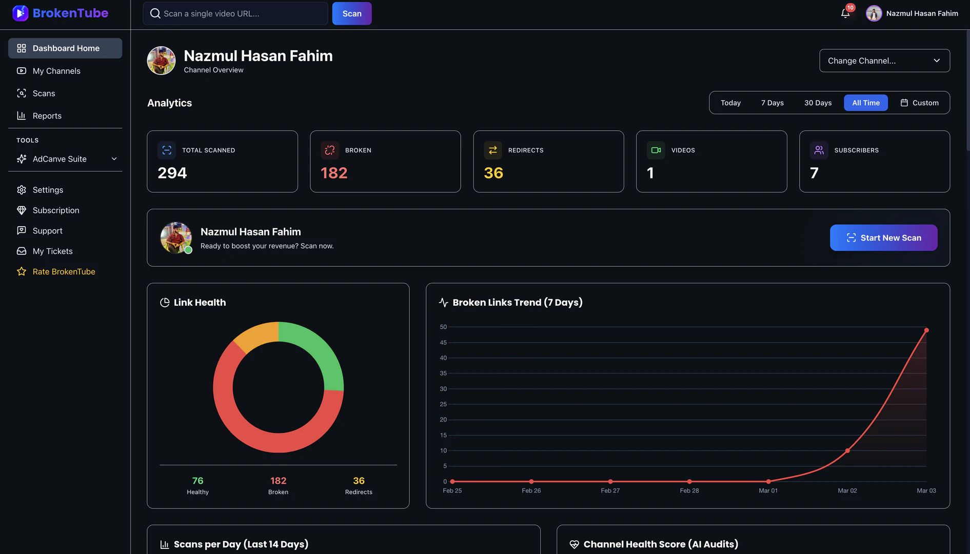 - Automated Link Scanning: BrokenTube automatically scans your YouTube channel for broken links, saving time and effort in manual checks.
