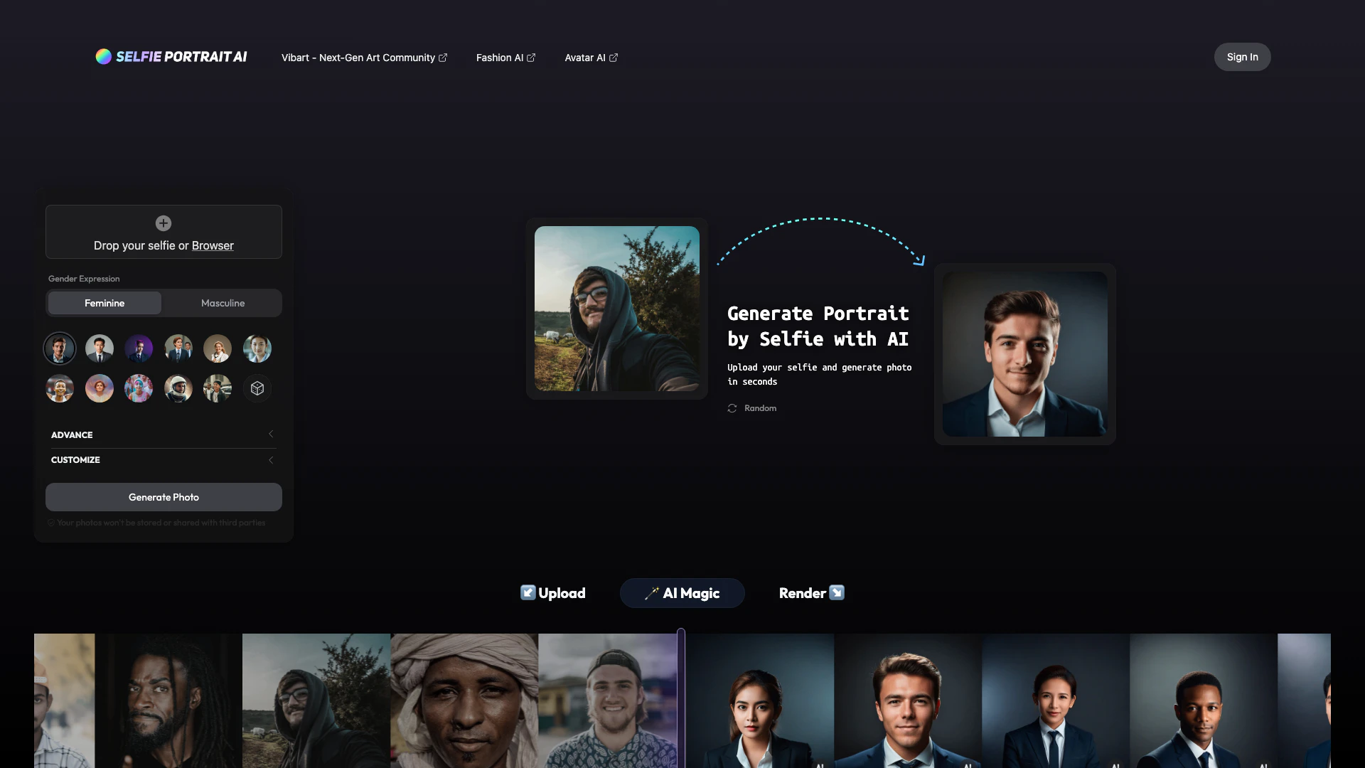 - AI-Powered Transformation: Utilizes advanced AI technology to create high-quality portraits.