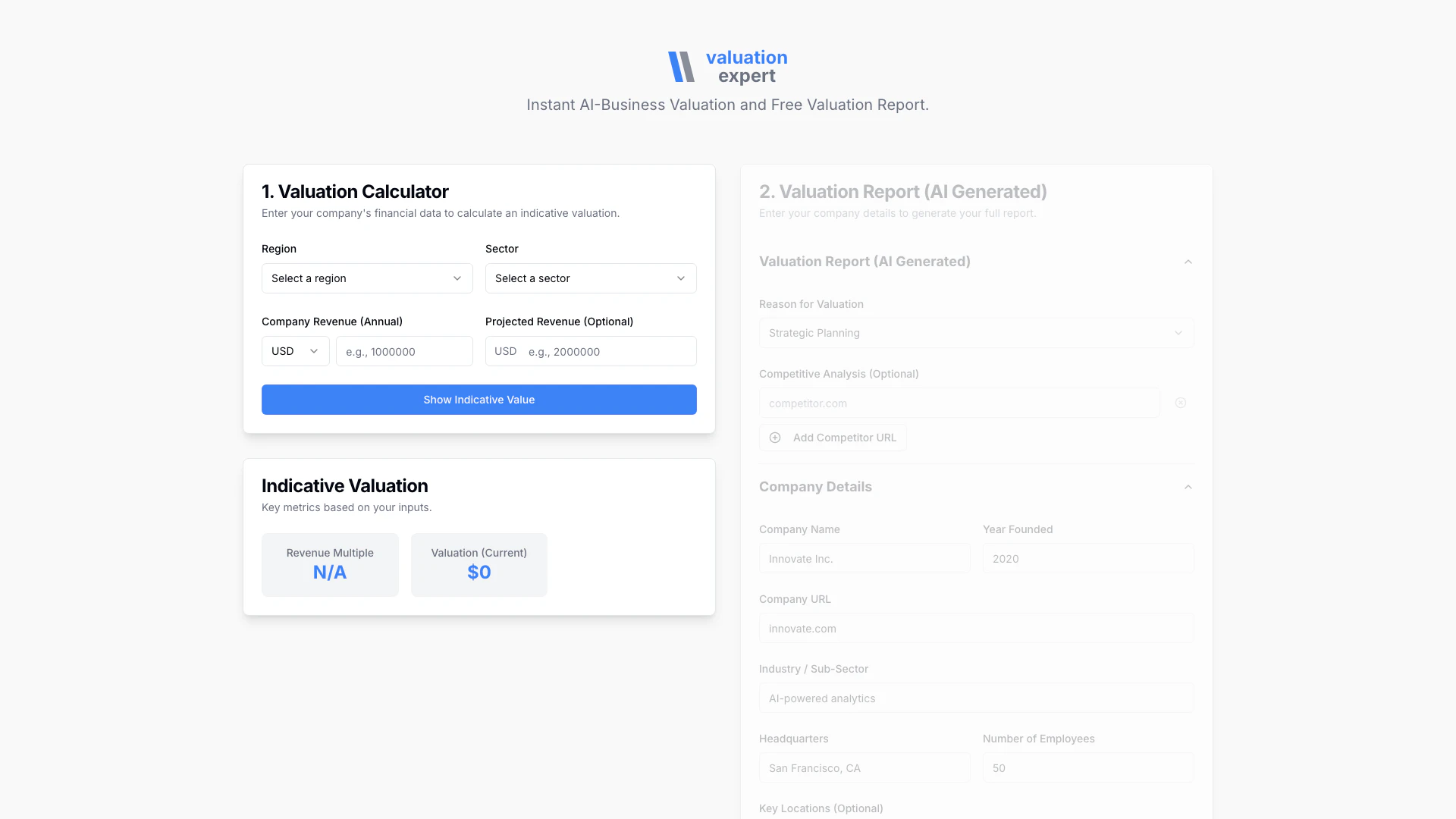 - AI-Generated Valuation Reports: Receive comprehensive reports that include competitive analysis and detailed company insights.