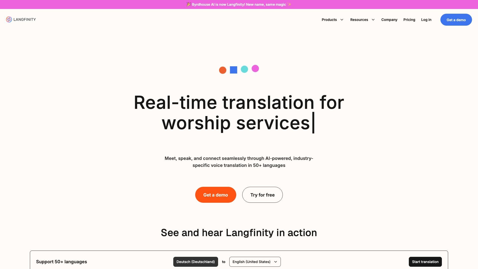 Byrdhouse is now known as Langfinity. It provides AI-powered, industry-specific voice translation in 50+ languages for real-time communication in meetings, events, and other multilingual scenarios.
