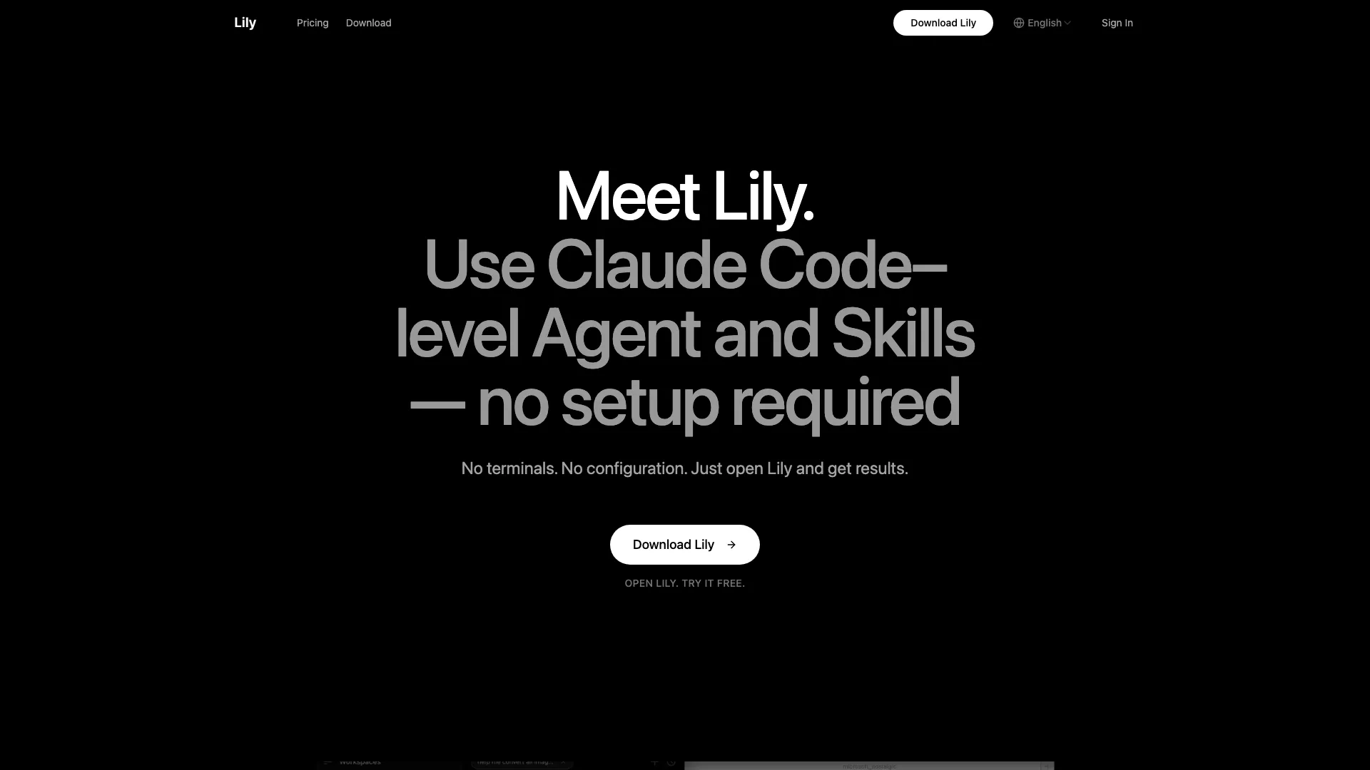 - No Setup Required: Lily offers Claude Code-level capabilities without the need for any configuration or terminal setup, making it user-friendly for all.