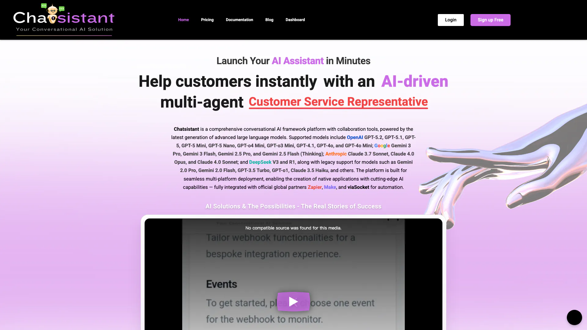 - Seamless Integrations: Chatsistant integrates with numerous platforms such as Zapier and Make, enabling easy automation and workflow management across various applications.