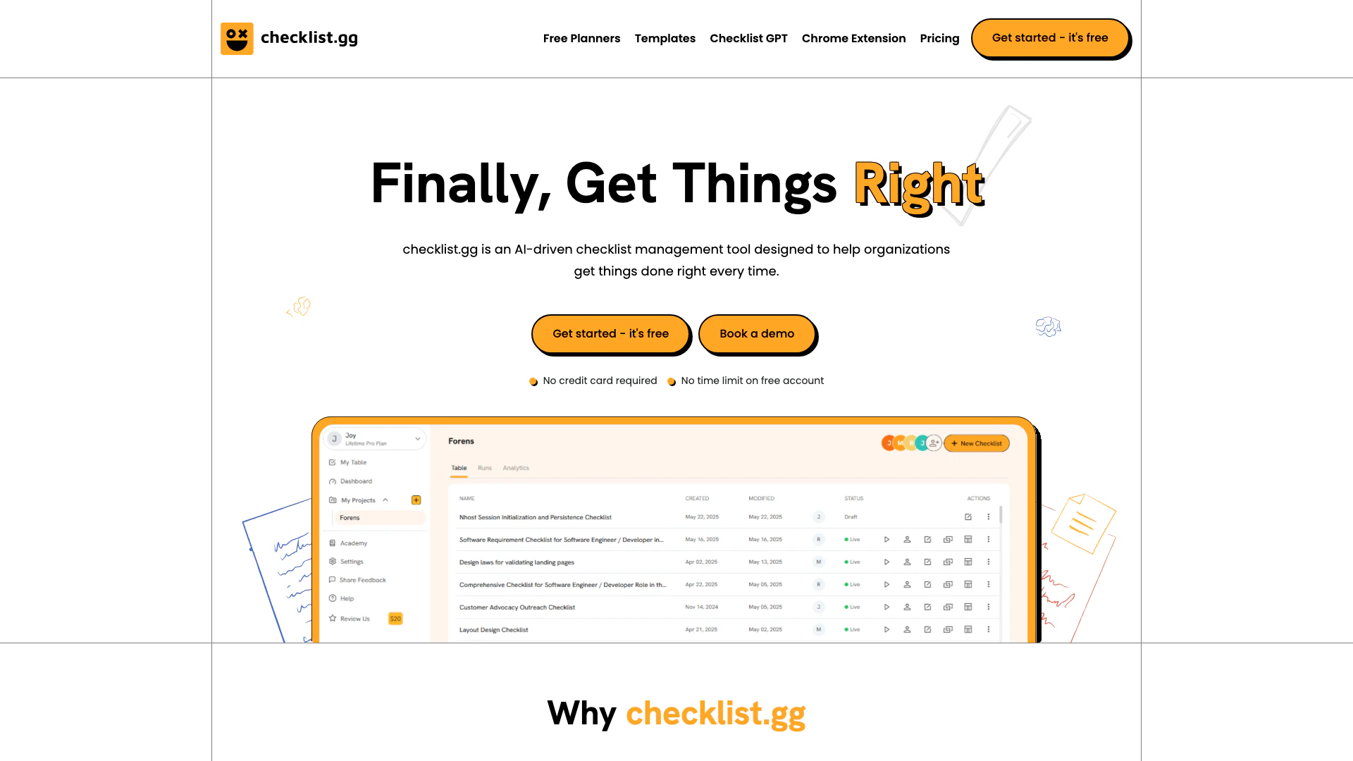 checklist.gg is an AI-driven checklist management tool designed to help organizations get things done right every time. Use our AI to create your own checklists, processes, and SOPs by providing your specific needs and requirements. You don’t need prior knowledge to get started.