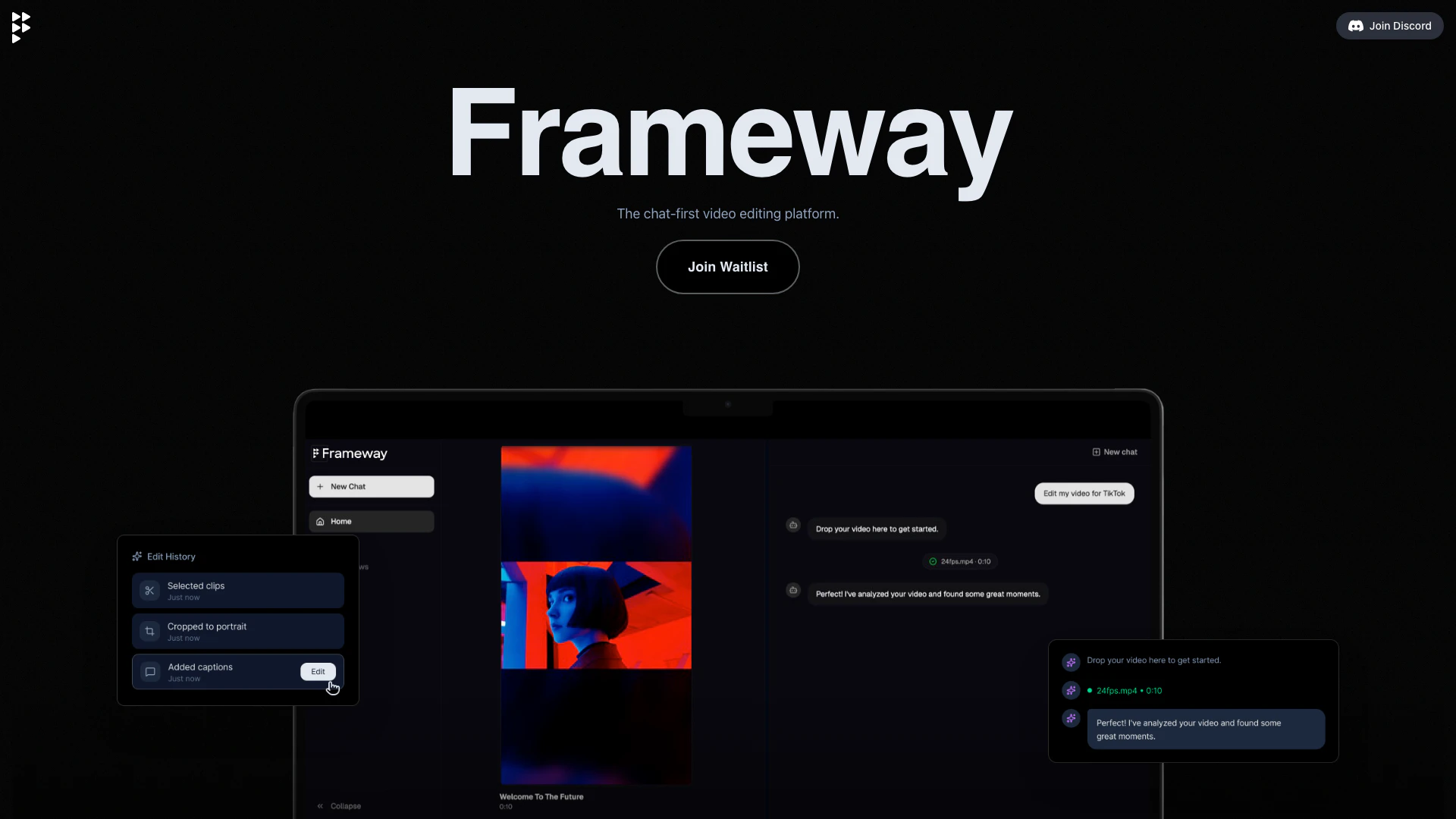 - Chat-First Editing Approach: Frameway allows users to edit videos by simply describing their needs, making the process intuitive and user-friendly.