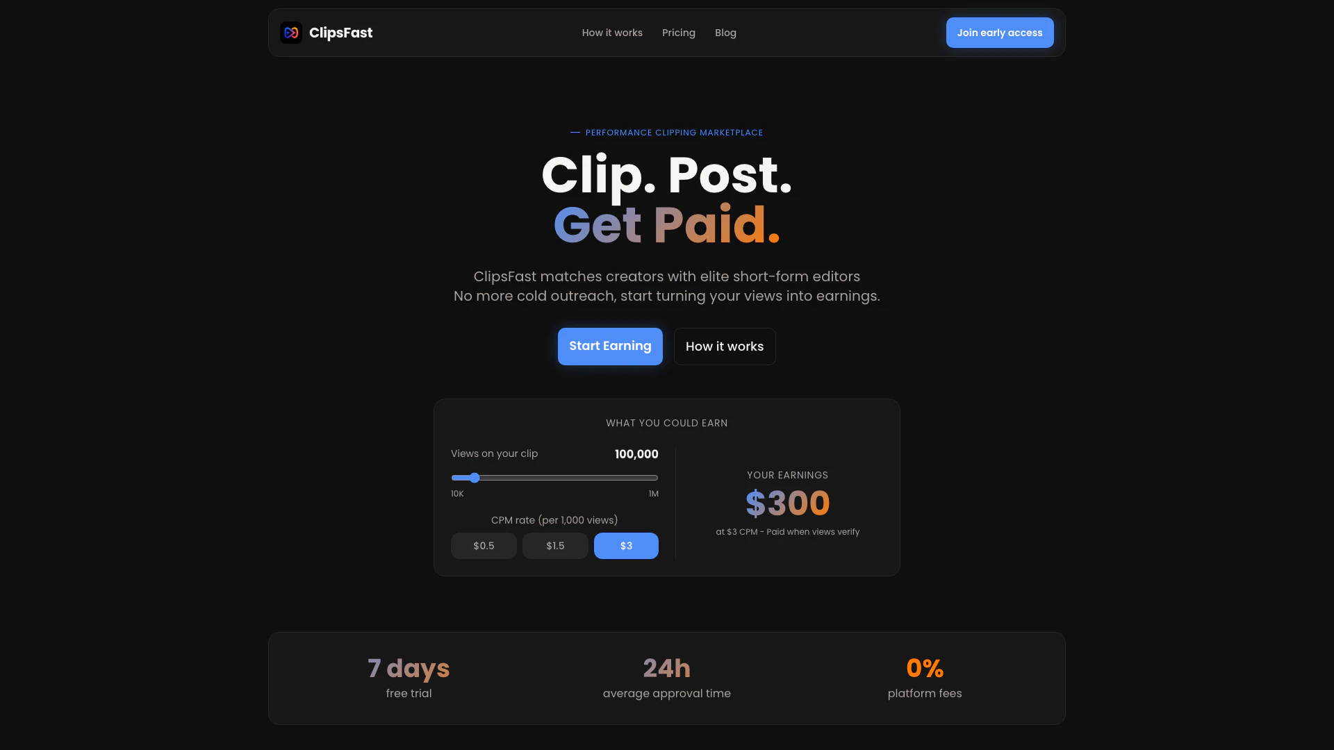 - No Platform Fees: Editors keep 100% of their earnings with 0% platform fees, maximizing their income from submitted clips.