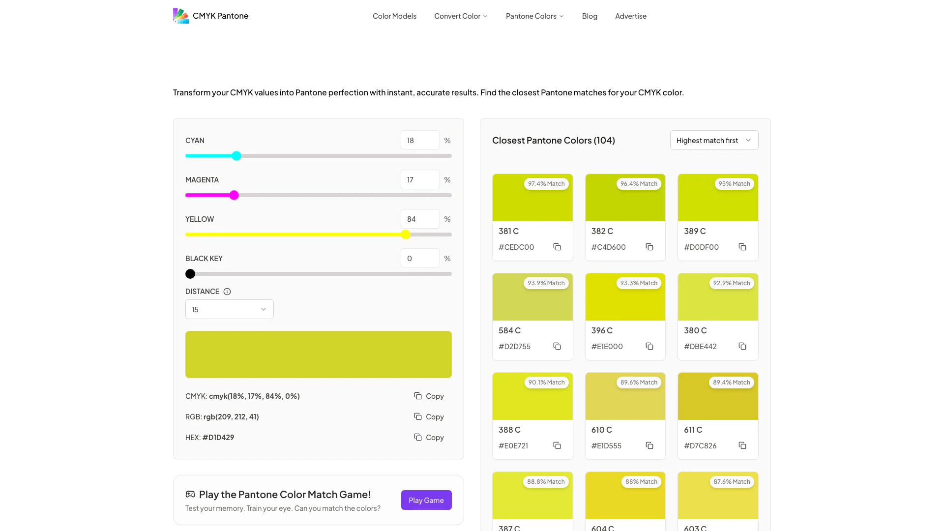 - Click the 'Convert' button to generate the closest Pantone matches.