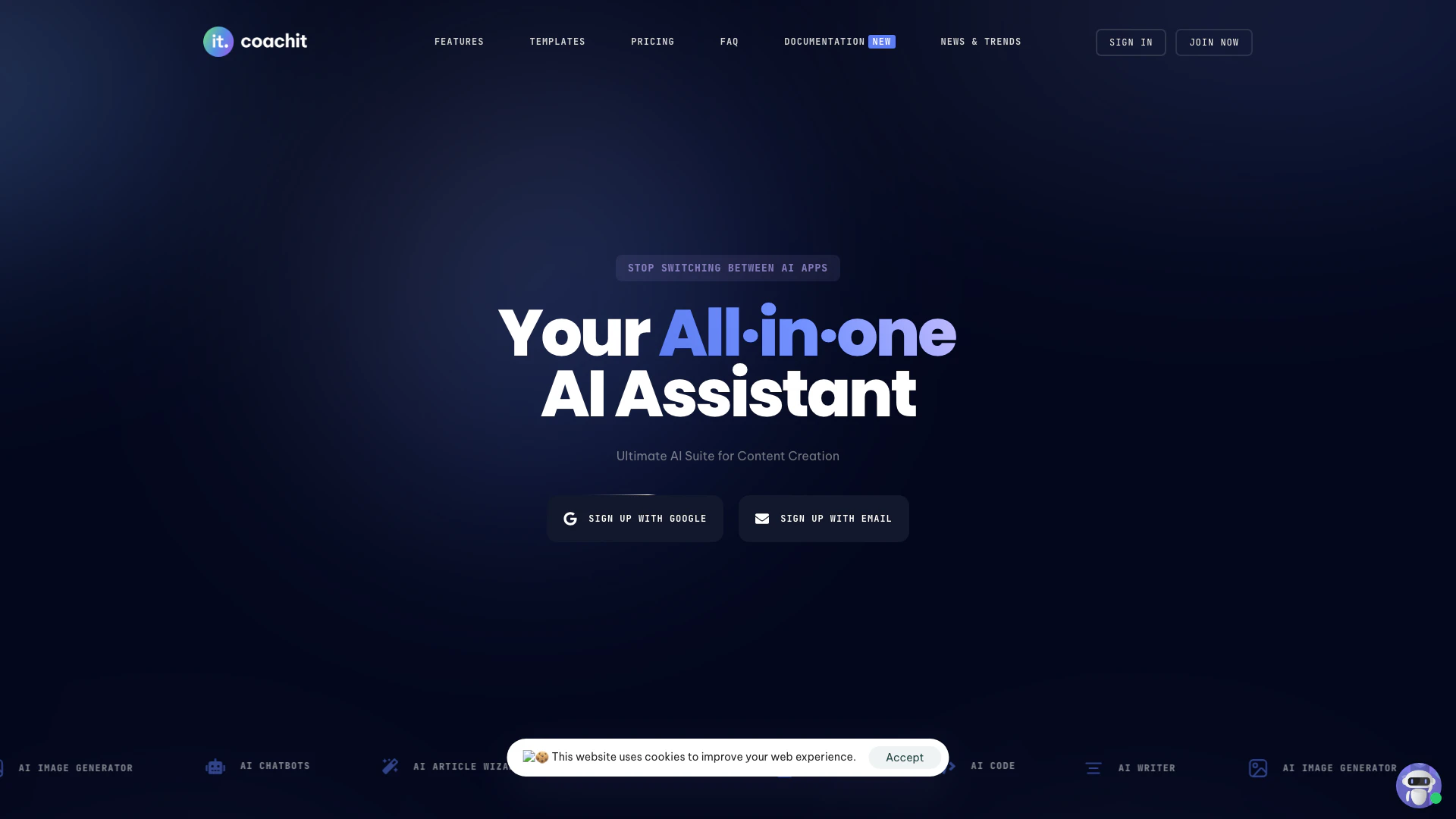 - Comprehensive AI Tools: Coachitai offers a wide range of AI tools including writing, image generation, chatbots, and voiceovers, catering to various content creation needs.