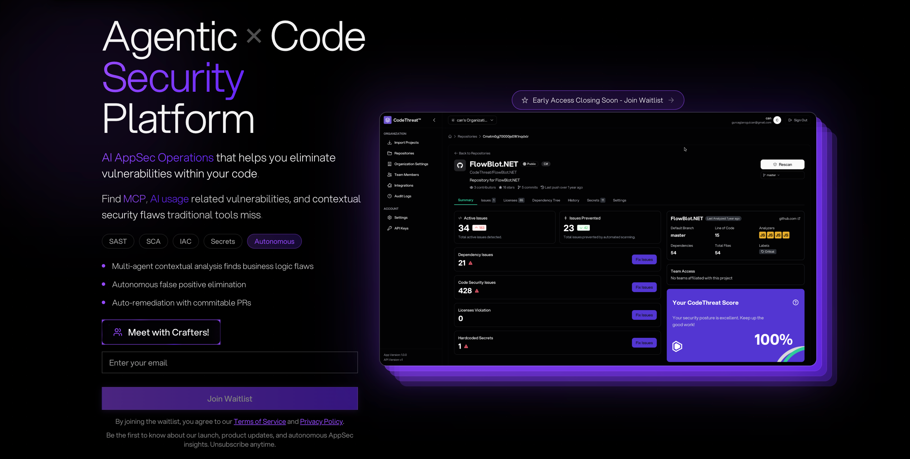 Codethreat is a cybersecurity tool designed to detect and prevent potential code threats and security vulnerabilities.