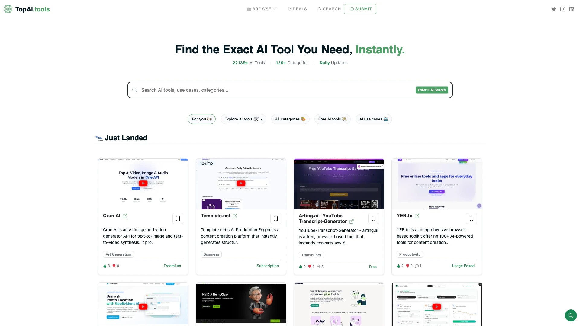 - Extensive Directory: Access a comprehensive list of over 22,139 AI tools across 120+ categories.