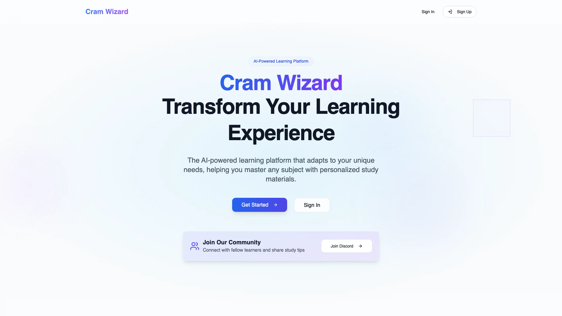 Cramwizard is an AI-powered[1] learning platform[2] designed specifically for students. It leverages case-study-backed strategies[4] to enhance study efficiency, providing personalized study materials[3] tailored to individual learning needs. The platform aims to transform the learning experience by adapting to each user's strengths and weaknesses, making it easier to master various subjects.