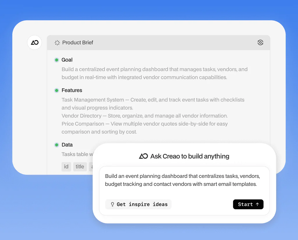 - Let Creaoai handle the backend, database, and hosting automatically as it builds your app based on your description.