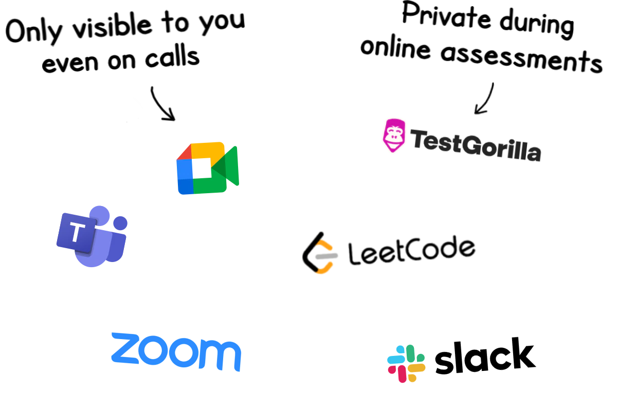 CTRLpotato keeps a compact, distraction-free window during calls and won’t interfere with your screen share. If you prefer, you can view answers on your phone as a second screen.