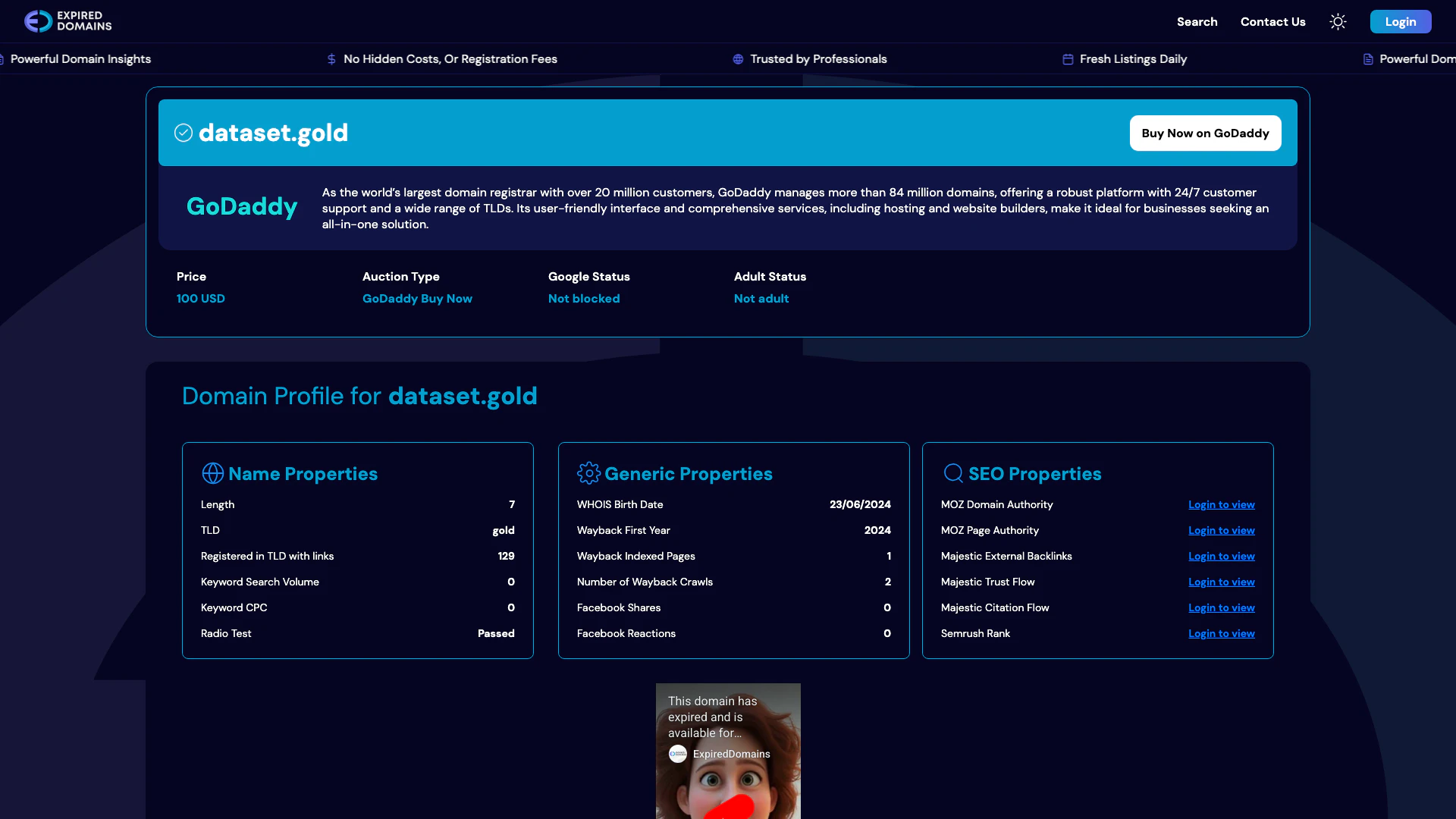- Visit the dataset.gold page on ExpiredDomains.com.