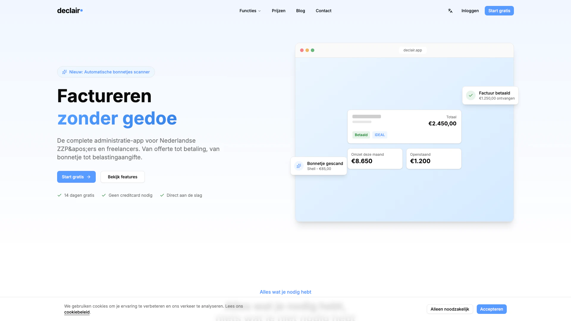 Declair is primarily aimed at Dutch self-employed individuals (ZZP'ers) and freelancers who require a straightforward and efficient invoicing solution. It is ideal for those who want to minimize the time spent on administrative tasks and focus more on their core business activities. Whether you are a consultant, designer, or service provider, Declair caters to your invoicing needs.
