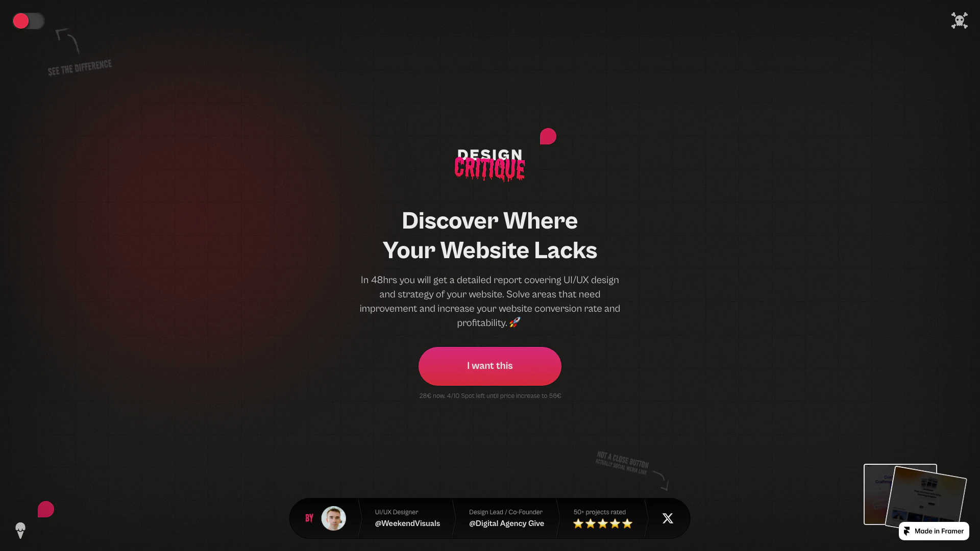 For the latest pricing, please visit this link: https://designcritiq.framer.website/bad-design