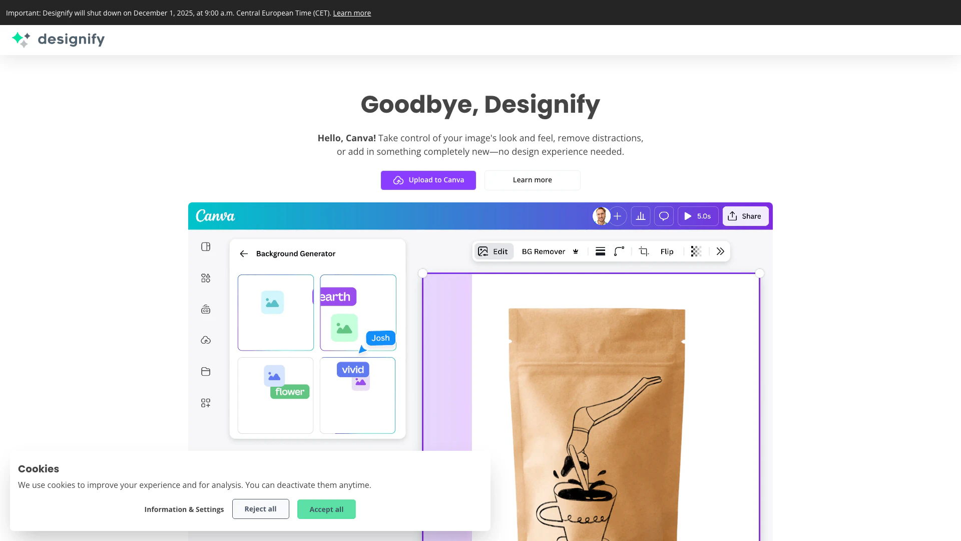Designify officially shut down on December 1, 2025 at 9:00 a.m. Central European Time (CET).