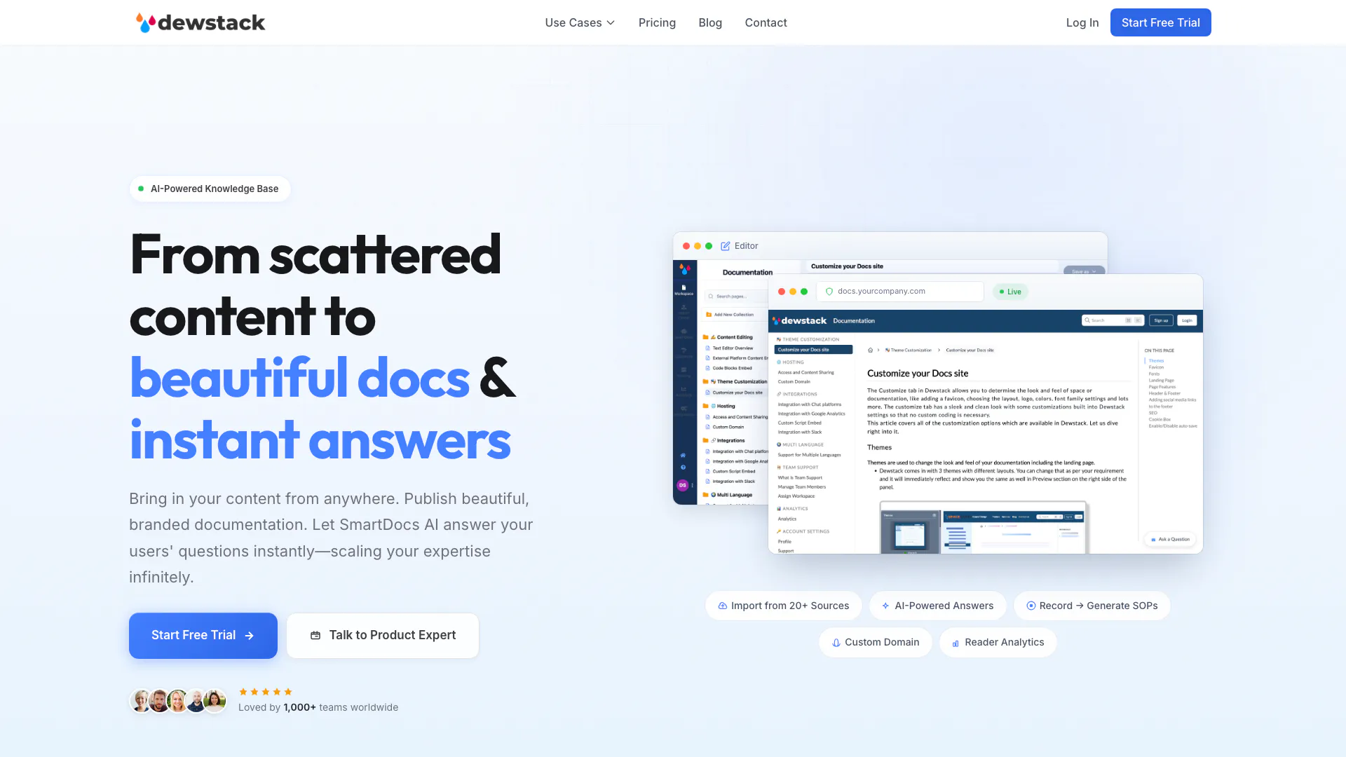 - AI-Powered Instant Answers: SmartDocs AI provides instant answers to user questions 24/7, enhancing user support and engagement.