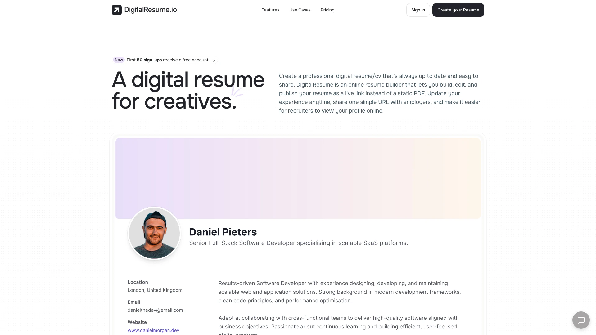 - Live Updates: Your resume is hosted online and updates in real-time, ensuring that recruiters always see the latest version without needing to resend files.