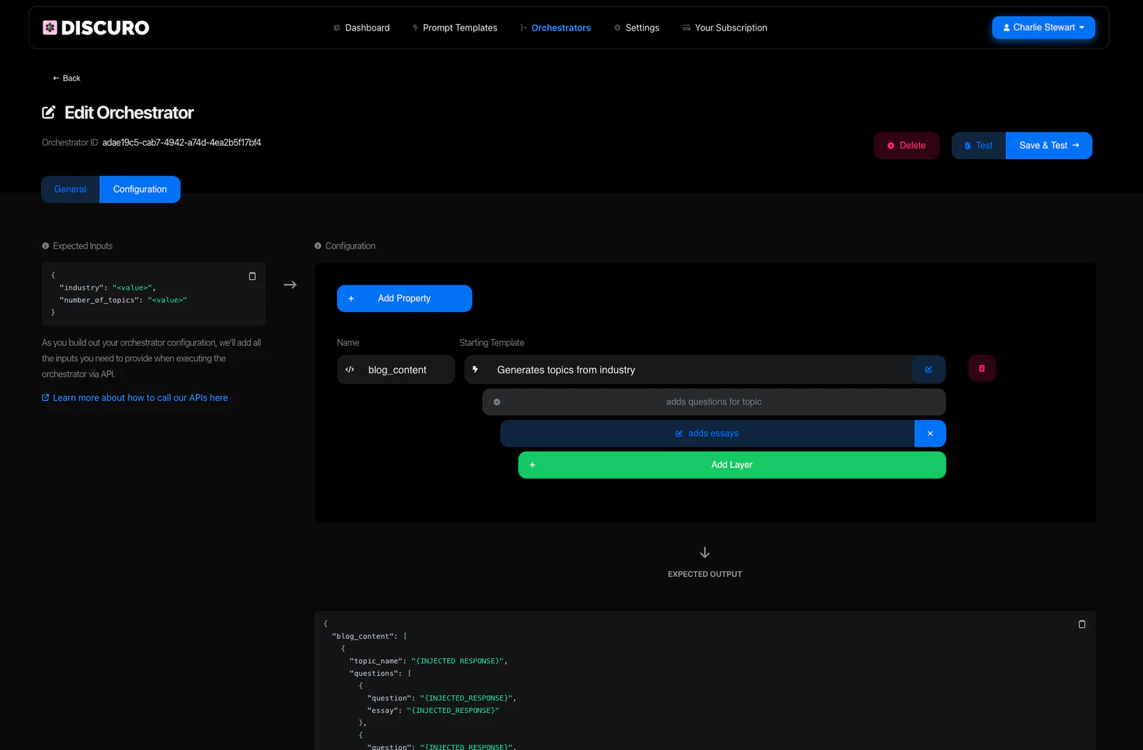 - Define a Prompt Template or Orchestrator: Start by creating prompt templates for specific functionalities, which serve as the foundation for your workflows.