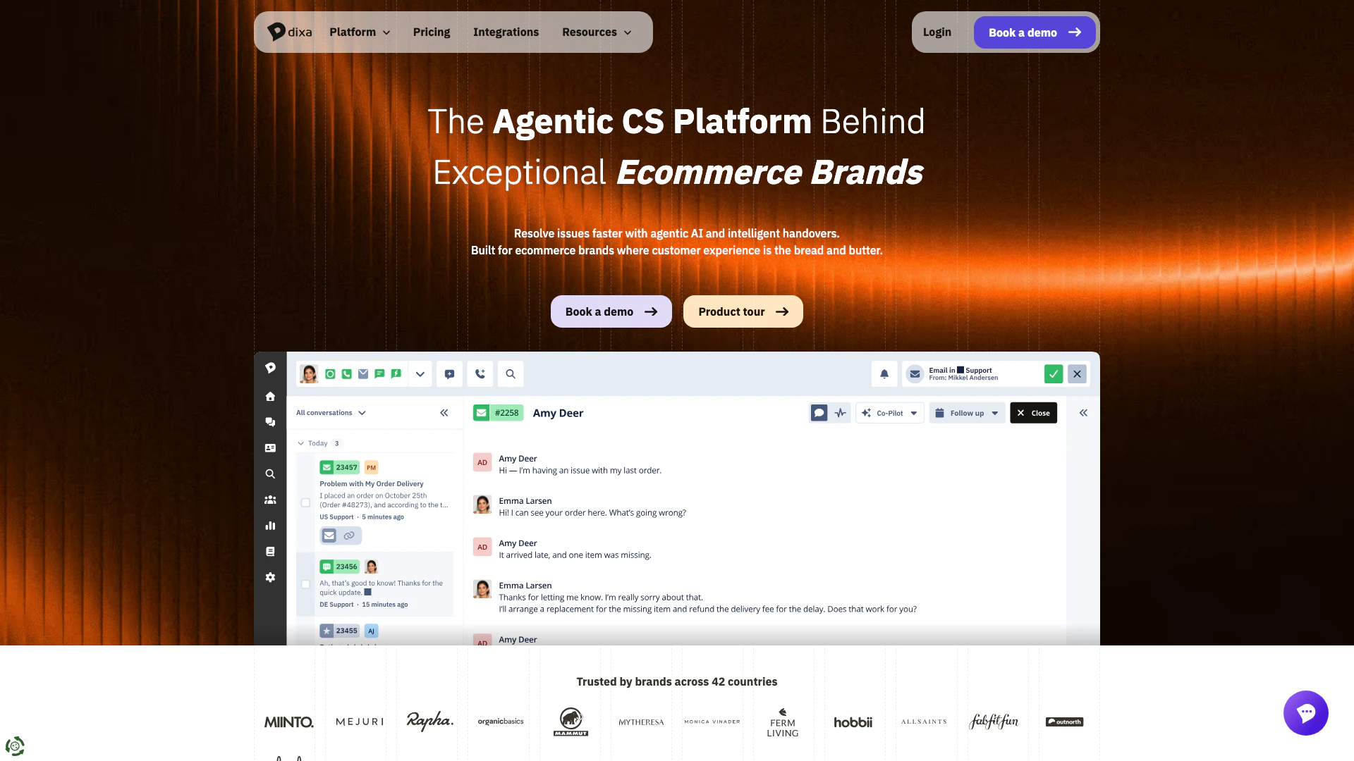 Dixa is an agentic customer service platform that helps e-commerce brands such as Rapha, Dott, and Oliver Bonas increase operational efficiency and resolve customer issues faster. By combining AI-driven resolution with intelligent handovers, brands moving to Dixa see an average 45% improvement in operational efficiency within six months and a 23% increase in customer satisfaction (CSAT).