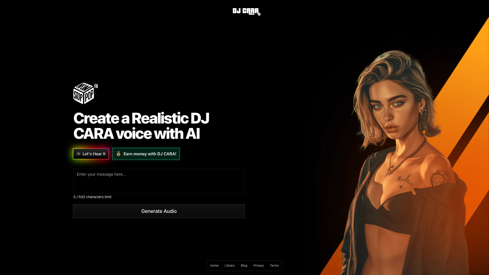 - Click on the 'Generate Audio' button to create your DJ Cara voice clip.
