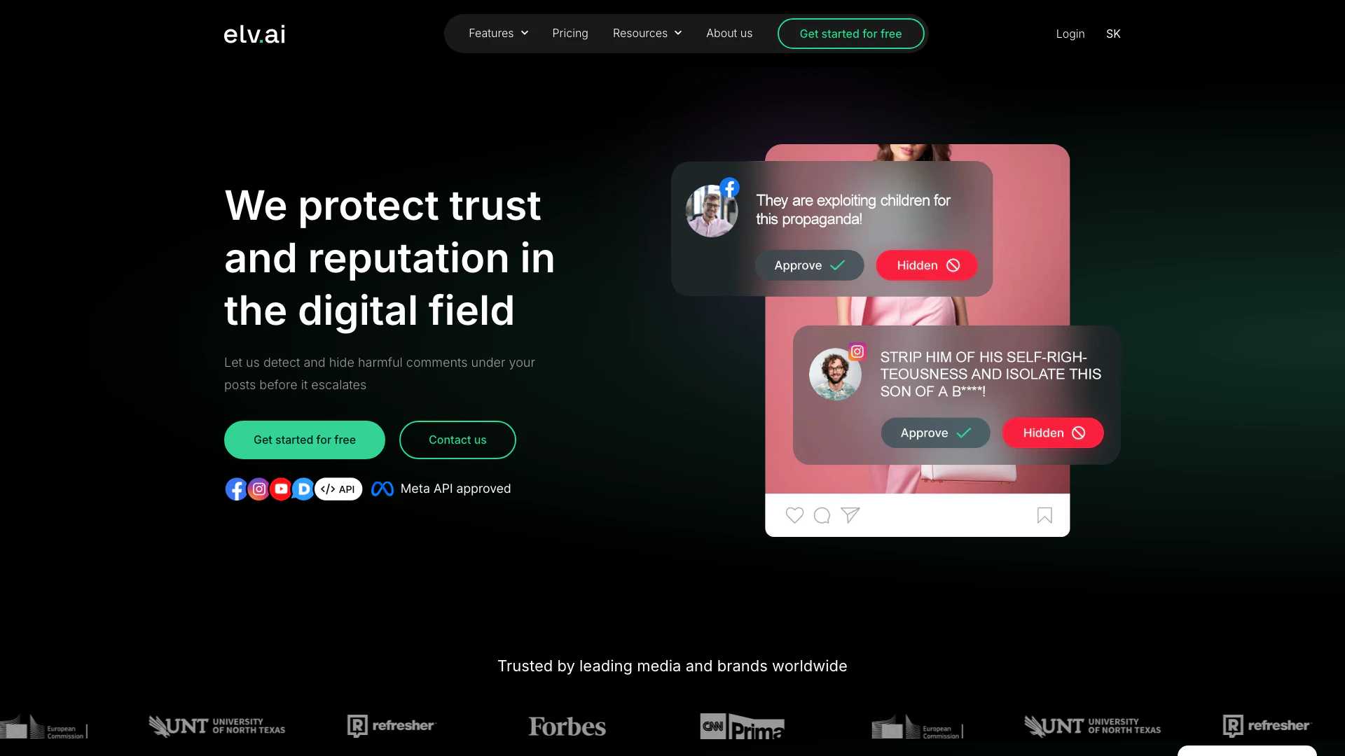 - AI-Powered Moderation[1]: Elvai uses advanced AI algorithms to monitor and filter comments 24/7, ensuring harmful content is hidden promptly.