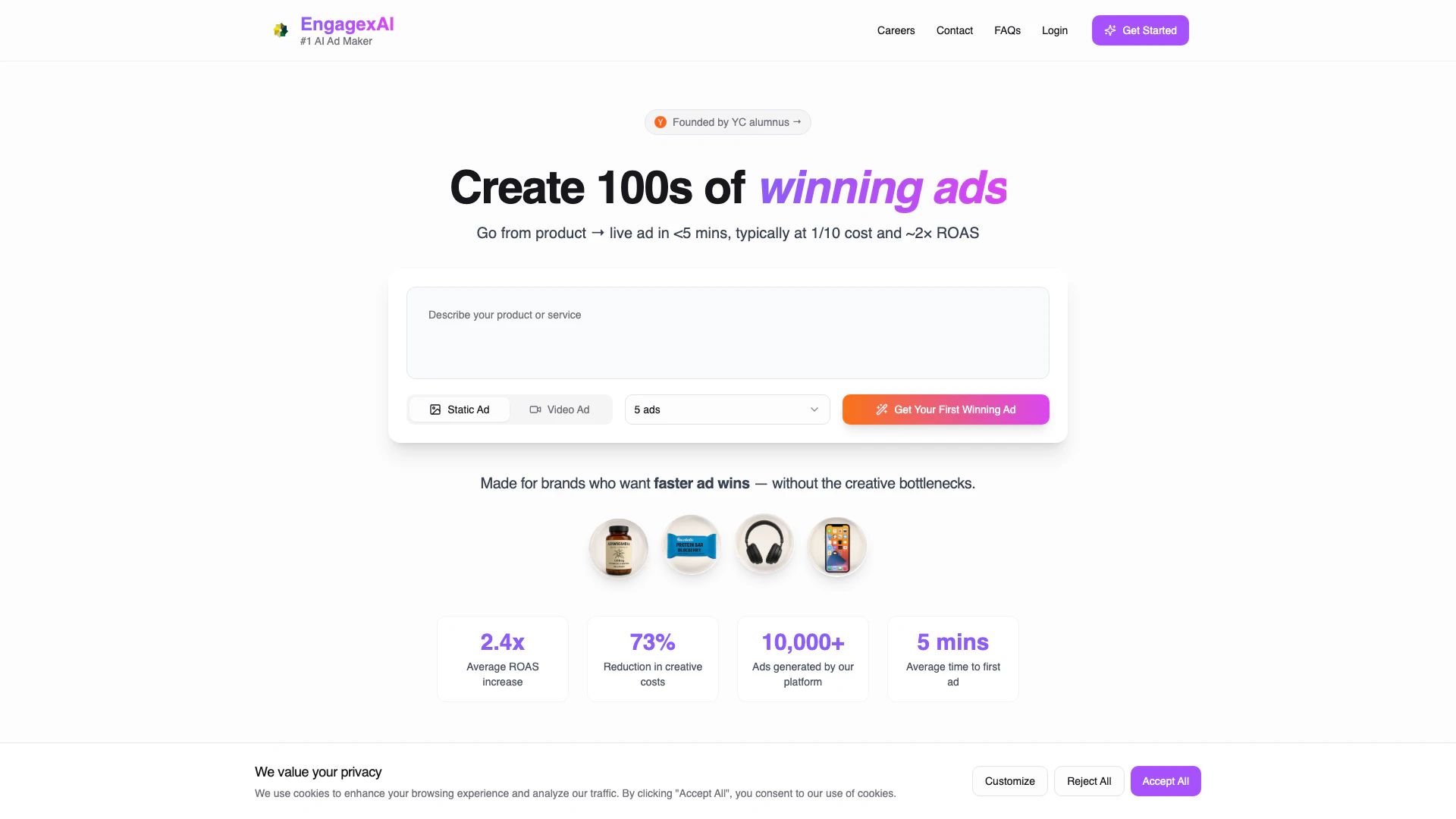 - Fast Ad Creation: EngagexAI allows users to create ads in under 5 minutes, significantly speeding up the ad production process.