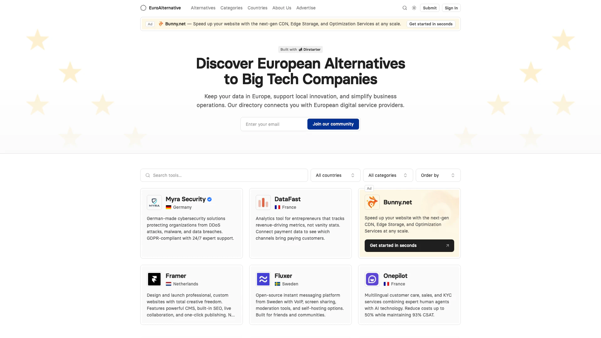 - Simplifies Business Operations: By offering a directory of European alternatives to big tech, Euroalternative simplifies the process of finding suitable digital services for various business needs.