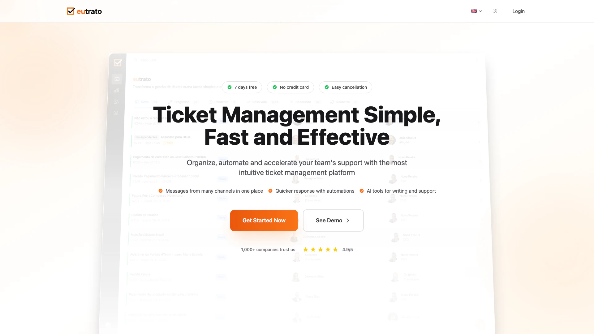 - Intuitive Ticket Management: Eutrato offers a simple and effective ticket management system that helps organize, automate, and accelerate team support.
