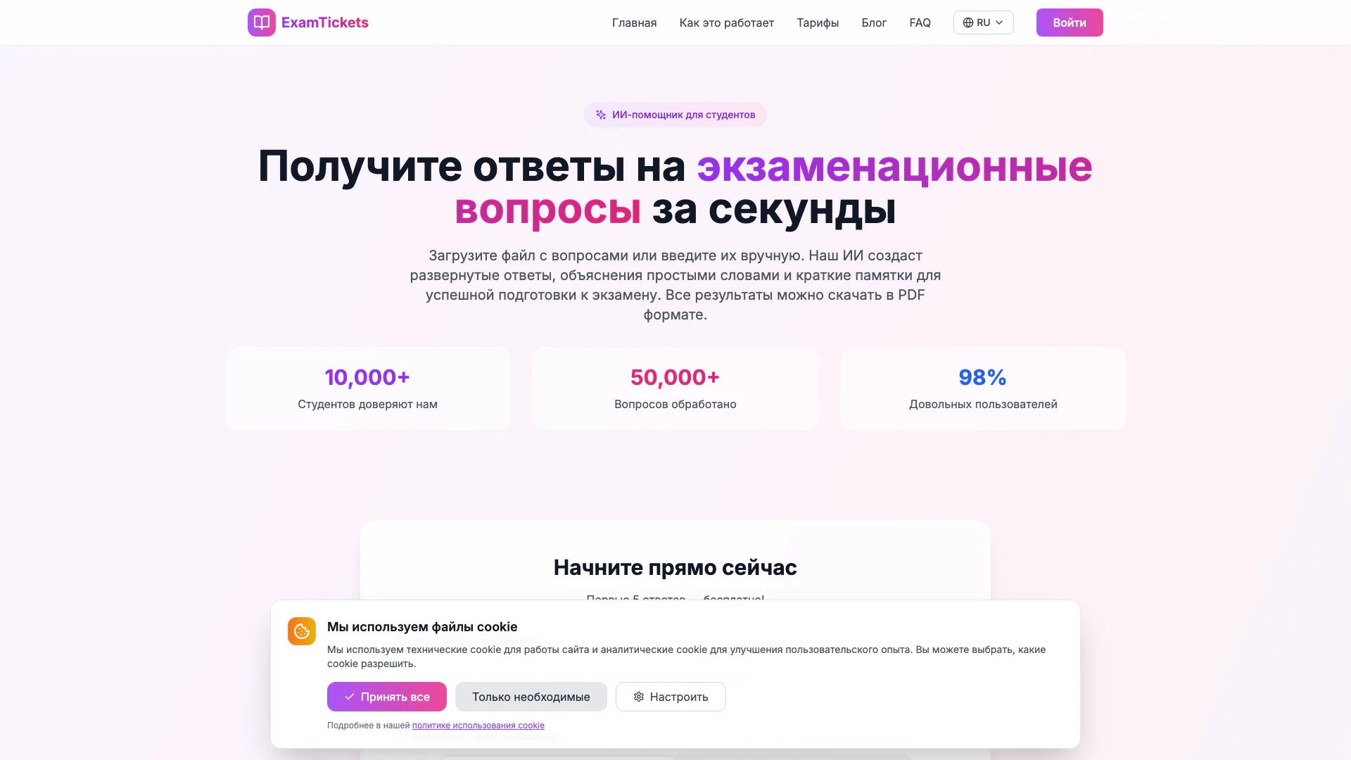 ExamTickets is an AI assistant designed to help students prepare for exams by generating detailed answers to exam questions.