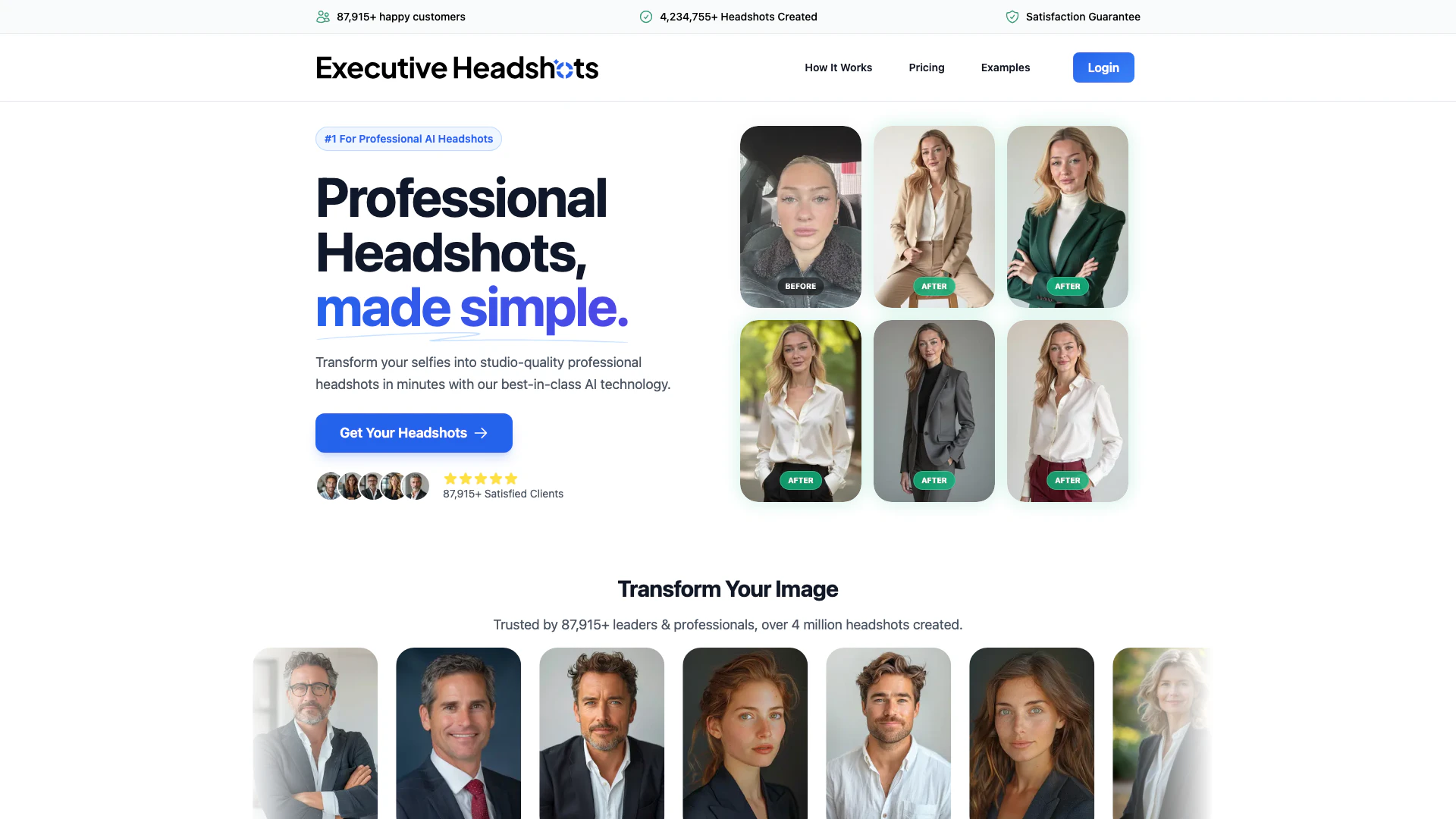 Executiveheadshots is a cutting-edge AI-driven[1] tool designed to create professional-quality headshots from user-uploaded selfies. With its advanced technology, it transforms ordinary photos into stunning executive portraits that are virtually indistinguishable from real photographs. This service is ideal for professionals looking to enhance their online presence, whether for LinkedIn profiles, corporate websites, or personal branding. With over 4 million headshots created and a satisfaction guarantee[6], Executiveheadshots stands out as a leader in the field of digital portraiture[7].