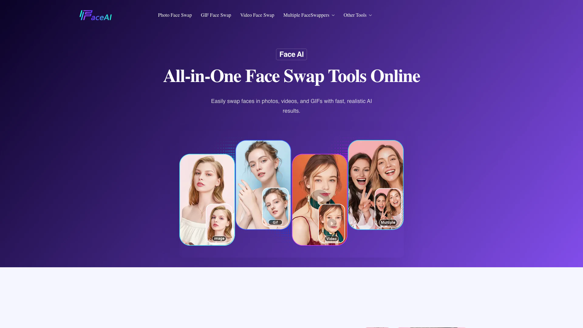 Face AI is an all-in-one online face swap toolkit. It allows you to swap faces in photos, videos, and GIFs using advanced AI technology. With free, fast, and realistic results, Face AI makes face swapping easy and accessible for everyone.