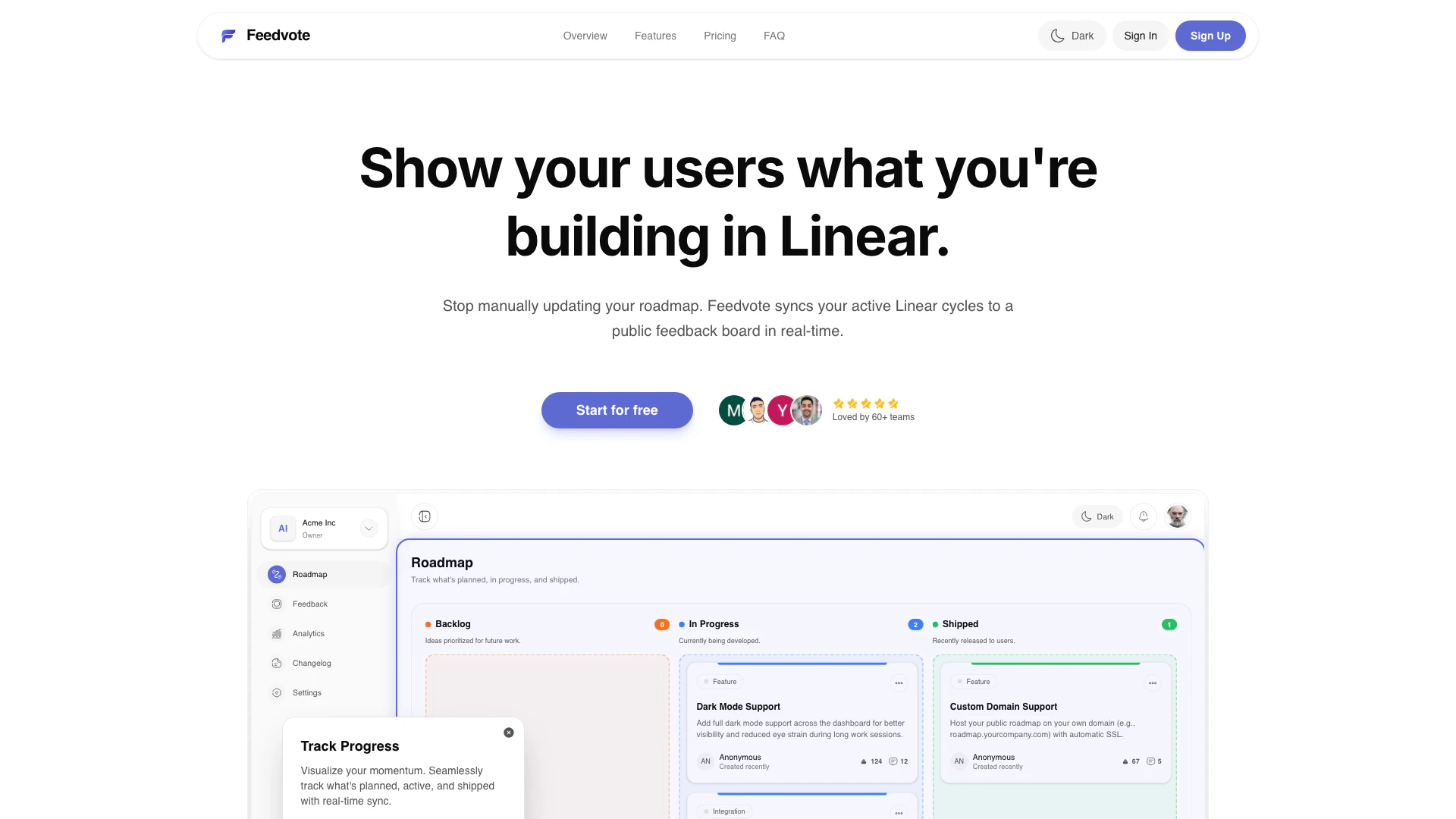 - Real-Time Syncing: Feedvote syncs active Linear cycles to a public feedback board in real-time, eliminating the need for manual updates.