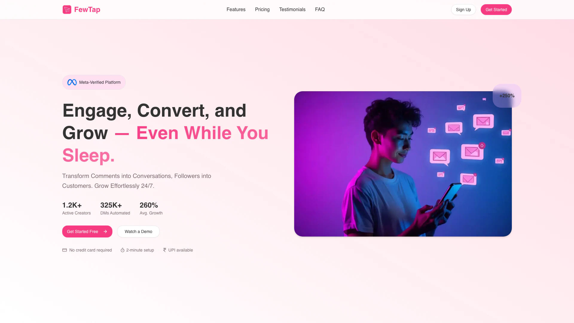 FewTap is an innovative DM automation[1] platform designed specifically for Instagram[2], aimed at helping creators and businesses engage with their audience more effectively. By transforming comments into personalized direct messages (DMs), FewTap allows users to automate interactions, keeping their audience engaged 24/7. With a focus on growth and conversion, FewTap offers features that streamline communication, making it easier for users to convert followers into customers. This platform is particularly beneficial for content creators, influencers, and businesses looking to enhance their social media presence and automate their engagement processes.
