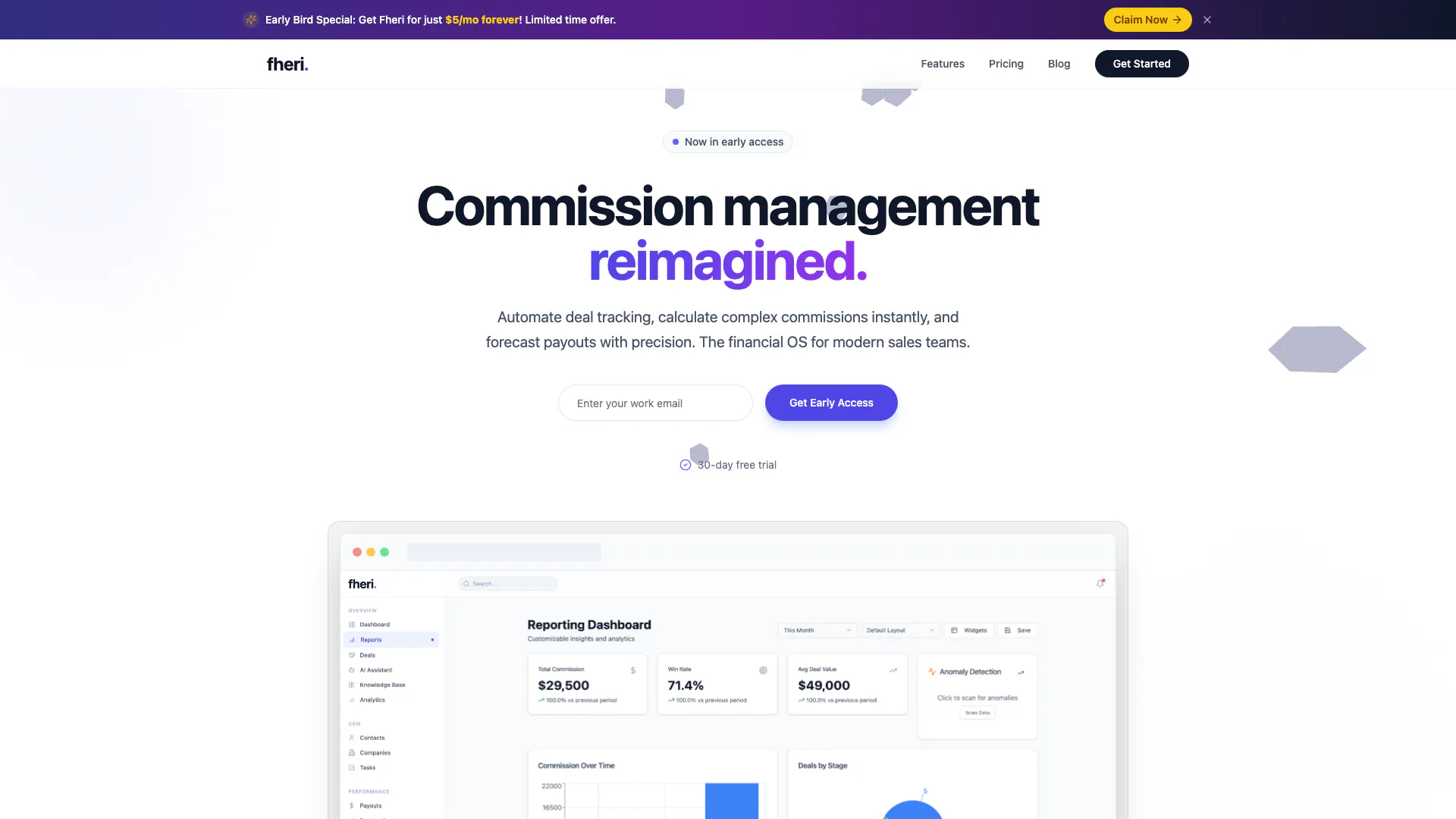 Fheri is a leading sales commission management software designed to streamline the process of tracking commissions, managing deals, and motivating sales teams. With its intuitive platform, Fheri automates complex commission calculations, provides real-time deal tracking, and offers advanced forecasting capabilities. Ideal for modern revenue teams, Fheri simplifies commission management, allowing companies to focus on driving sales performance without the chaos of spreadsheets. For just $5 per month, users can access unlimited features and users, making it an economical choice for businesses of all sizes.