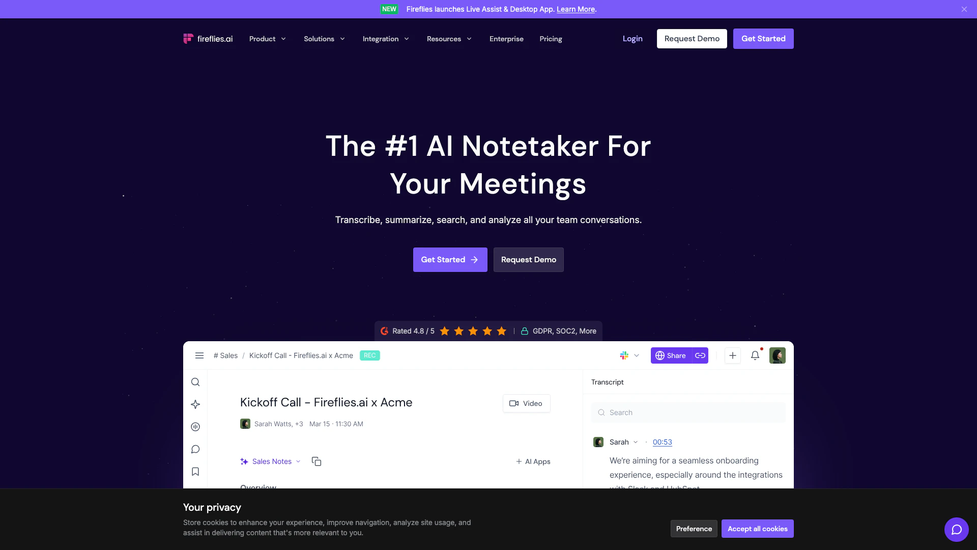 Fireflies.ai implements robust security measures to ensure your information is kept safe, including data encryption, compliance with GDPR and HIPAA, and strict access controls.