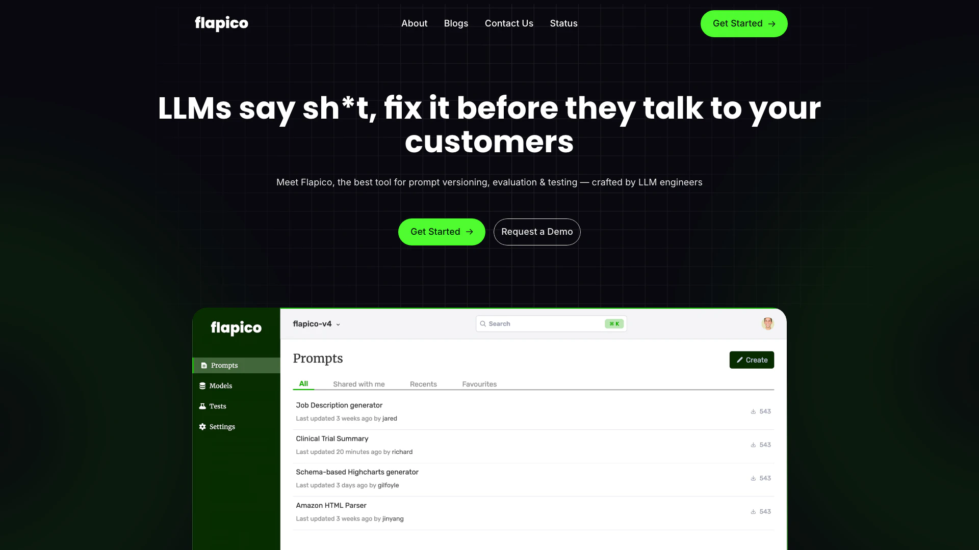 - Comprehensive Prompt Management: Flapico provides a robust platform for managing, versioning, testing, and evaluating prompts, ensuring efficient workflow for LLM applications.