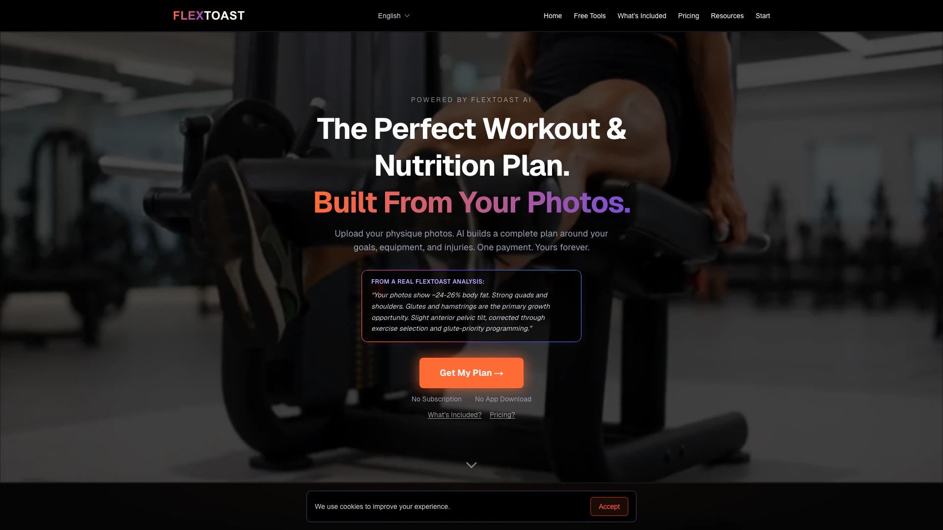 - Custom Workout Plans: Flextoast creates personalized workout plans based on user-uploaded photos, ensuring that the program targets individual goals, equipment, and any injuries.